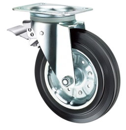 TPRb 42 Поворотная колесная опора с торм., термо-пластичная серая рез. под болт 100мм (M12/32)
