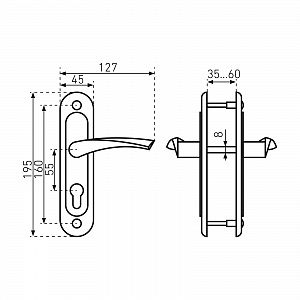 Птимаш ЗВ4-3.07 (ЗВ4-0623) серебро м/о 55 Замок врезной с/руч (10)
