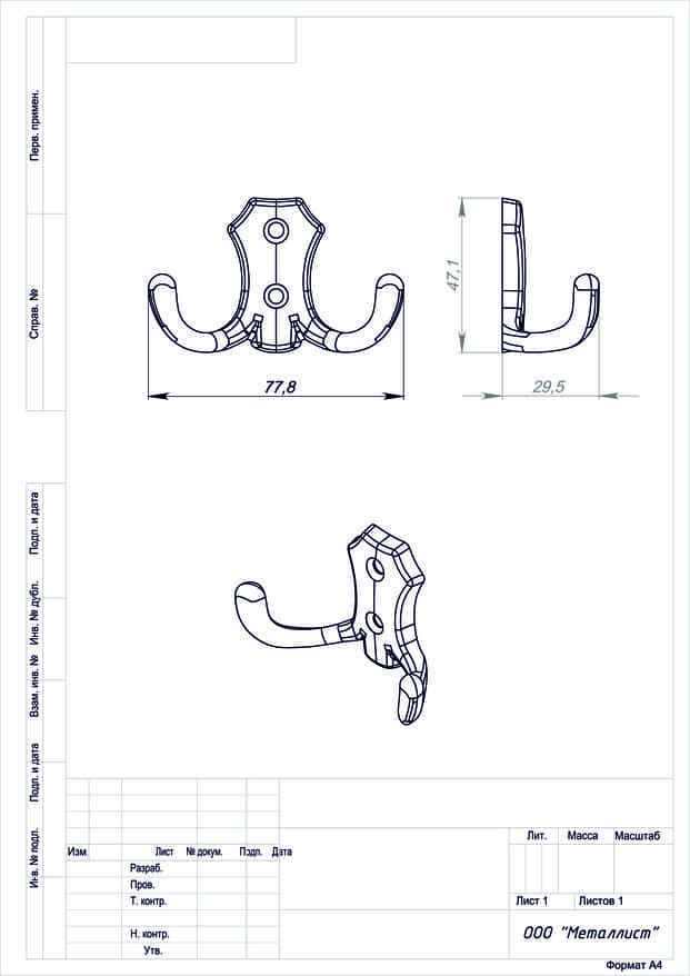 В зависимости от размера и материалов может нести разную нагрузку. Чтобы защитить металл от коррозии, изделие покрывается цинком, никелем или полимером. Конструкция может предусматривать разное количество рожков, а крепление у всех моделей идентично — для фиксации на стену предусмотрены отверстия под шурупы или другие крепежные детали.