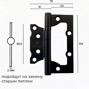 035841 Петля дверная без врезки 100*75*2,0 BL (черный) MARLOK (100)