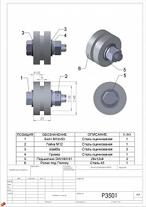 Р3507 Ролик МЕТАЛЛ d.50 под ПОЛОСУ на ПЛАСТИНАХ