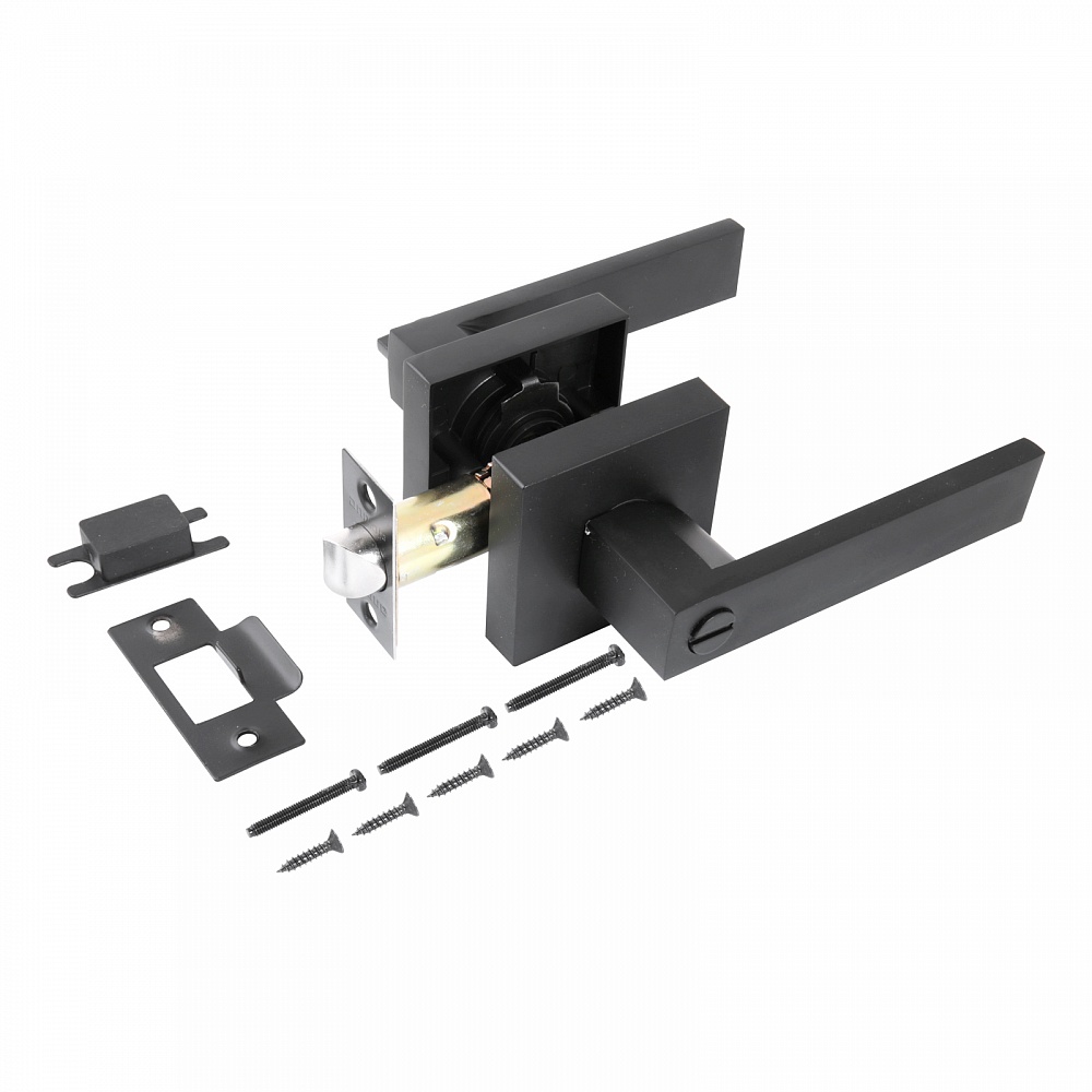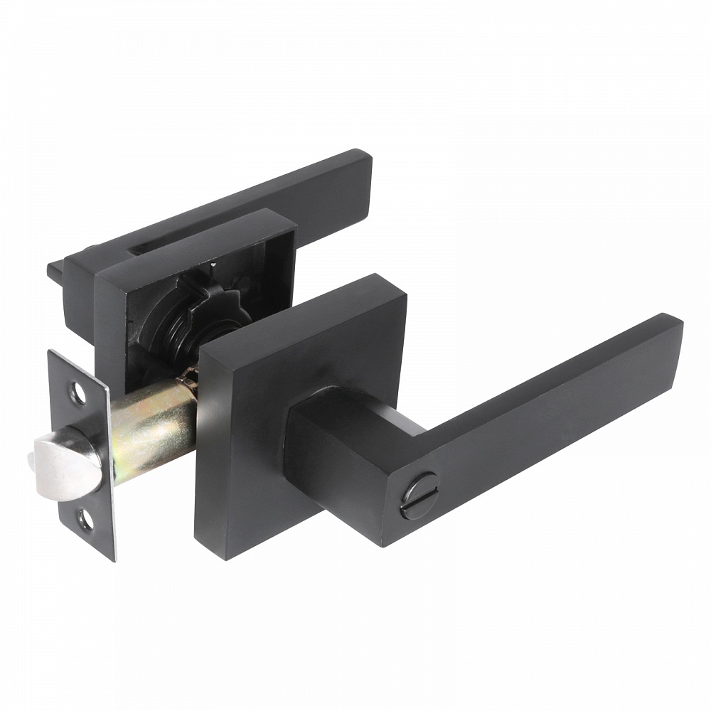 Ручка-защелка для межкомнатных дверей типа – кноб с фалевой ручкой прямоугольной формы. Выполнена из алюминиевого сплава с полимерным покрытием. Имеет фиксацию изнутри. Предназначена для дверей толщиной 32-44 мм. Регулируемый бексет: 60-70 мм. Скругленная защелка размером 14х19 мм с вылетом 11 мм. Габариты корпуса врезной защелки 83х23х20 мм.
