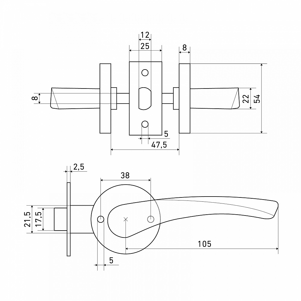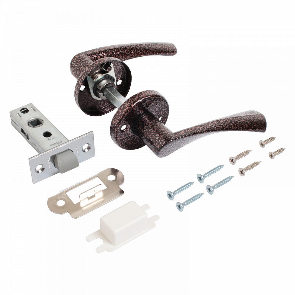 Защёлка с фалевыми ручками для установки на деревянные двери. Материал корпуса - сталь оцинкованная, материал язычка защелки - ударопрочный ABS пластик, ручек - алюминиевый сплав, сталь.