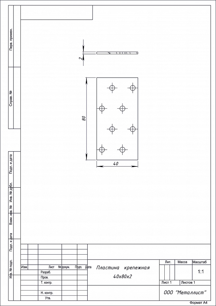Пластина крепежная 40*80*2 цинк (150) 30140080-010