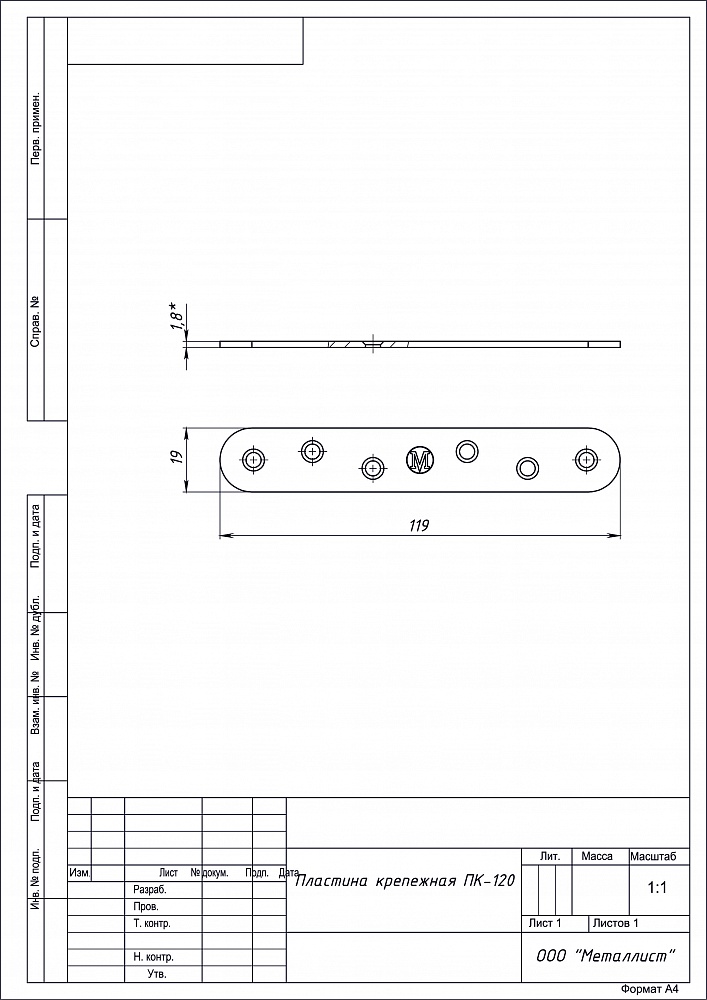 Пластина крепежная ПК-120 цинк (300) 20413120-010