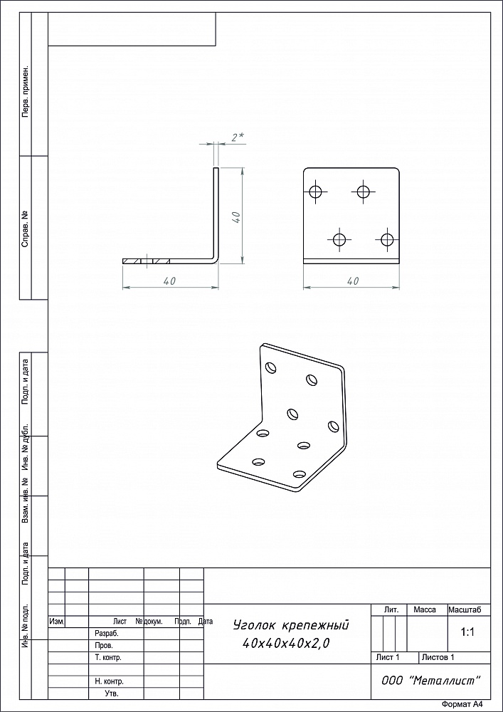 Уголок крепежный 40*40*40 ГОЦ (100) 30504040-012