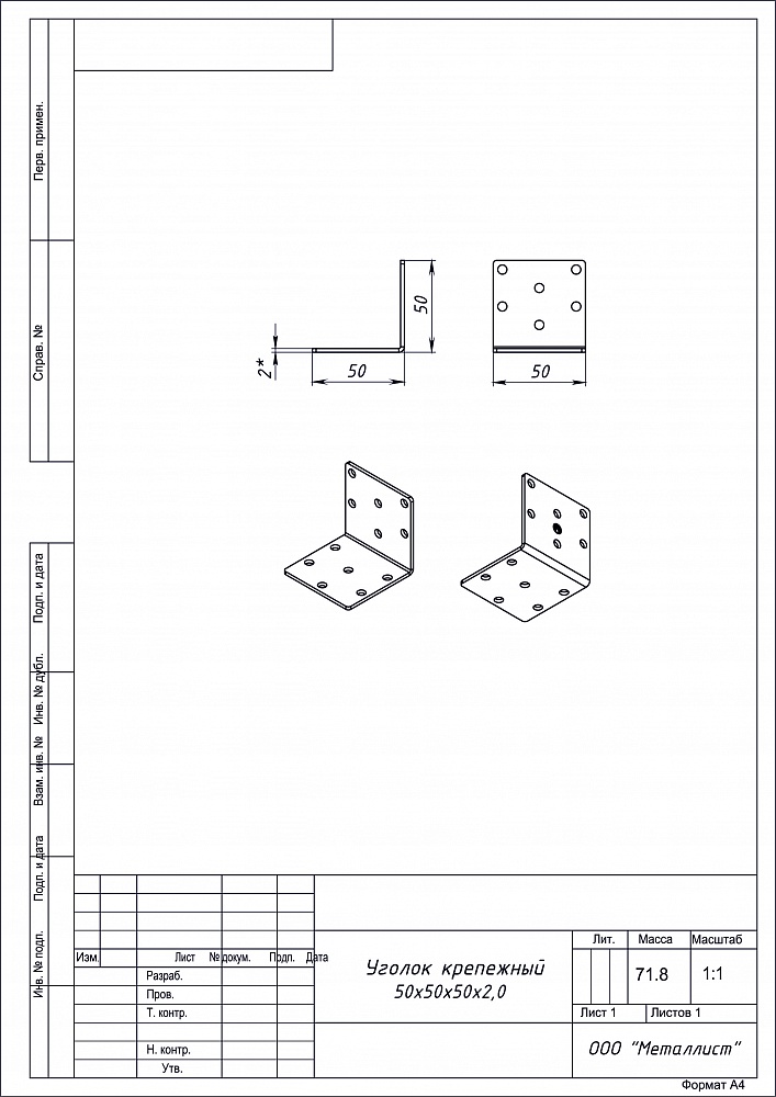 Уголок крепежный 50*50*50 ГОЦ (100) 30505050-012