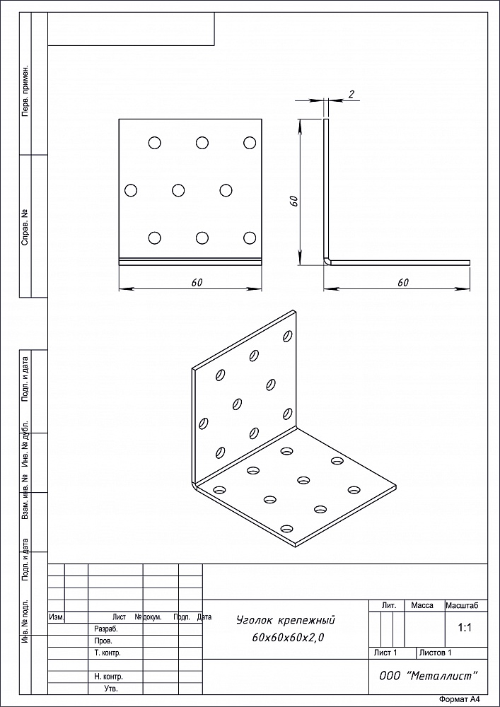 Уголок крепежный 60*60*60 ГОЦ (50) 30506060-012