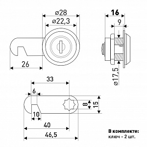 RеХ.3.2 ЭЛЬБОР Замок врезной 6-ти сувальдный, 5 стержней ф 18 мм, тяги, 5 ключей (10шт)
