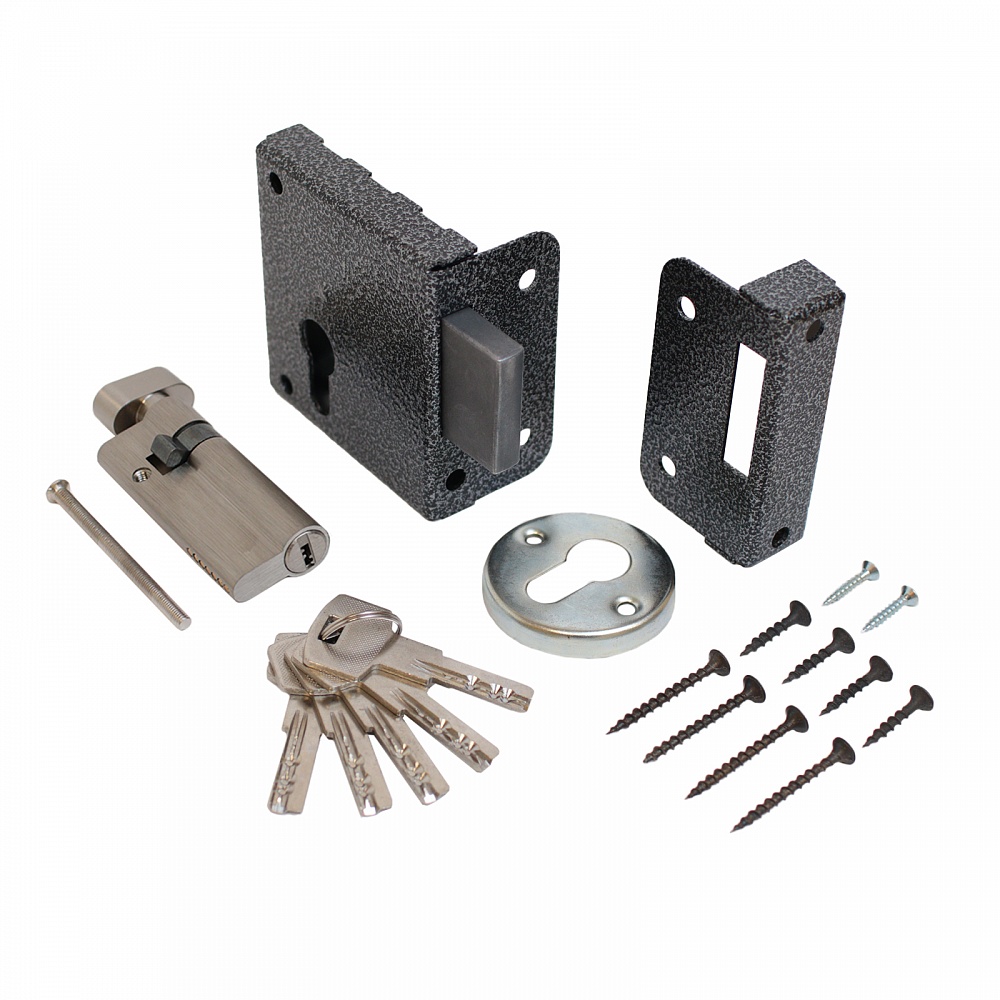 Замок накладной с усиленным цинковым цилиндровым механизмом.