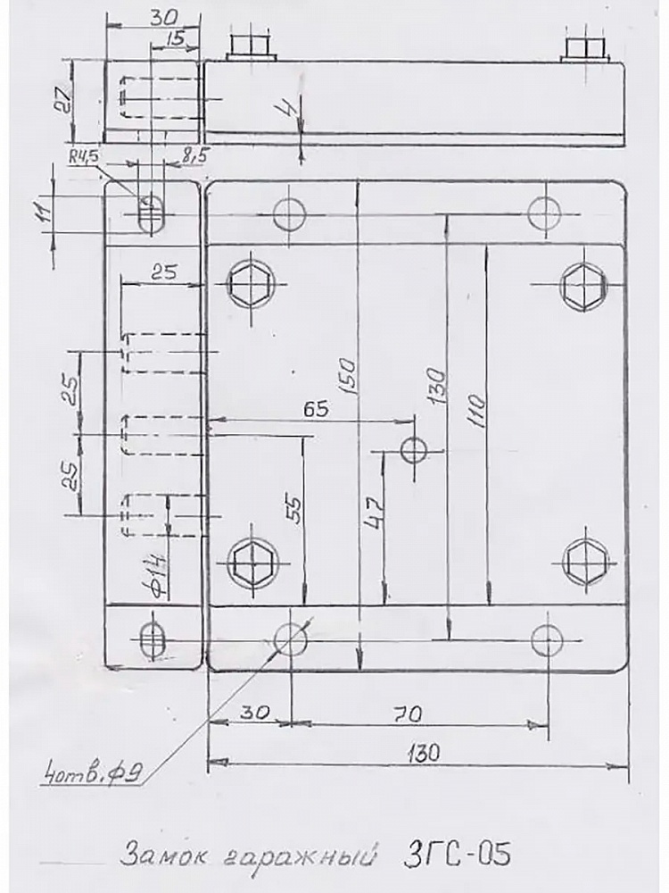 Замок ЗГС 05 (гаражный, латунный ключ).