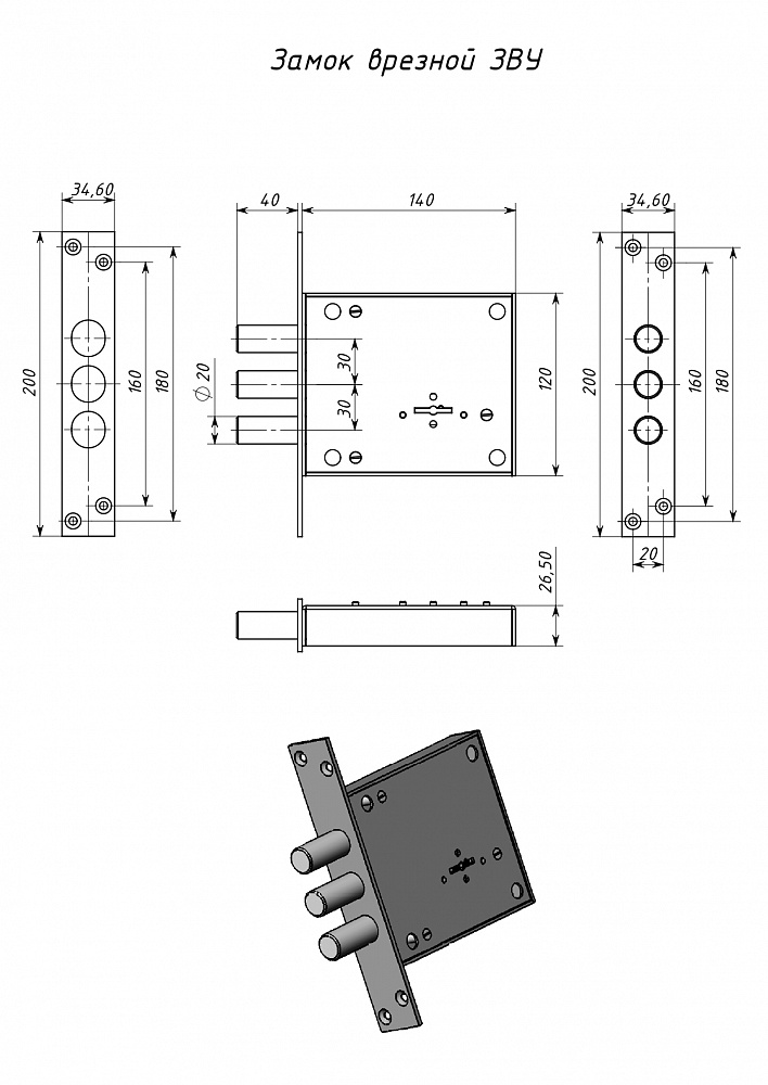 Замок врезной ЗВУ-003 (3 ключа) СИМЕКО (10)